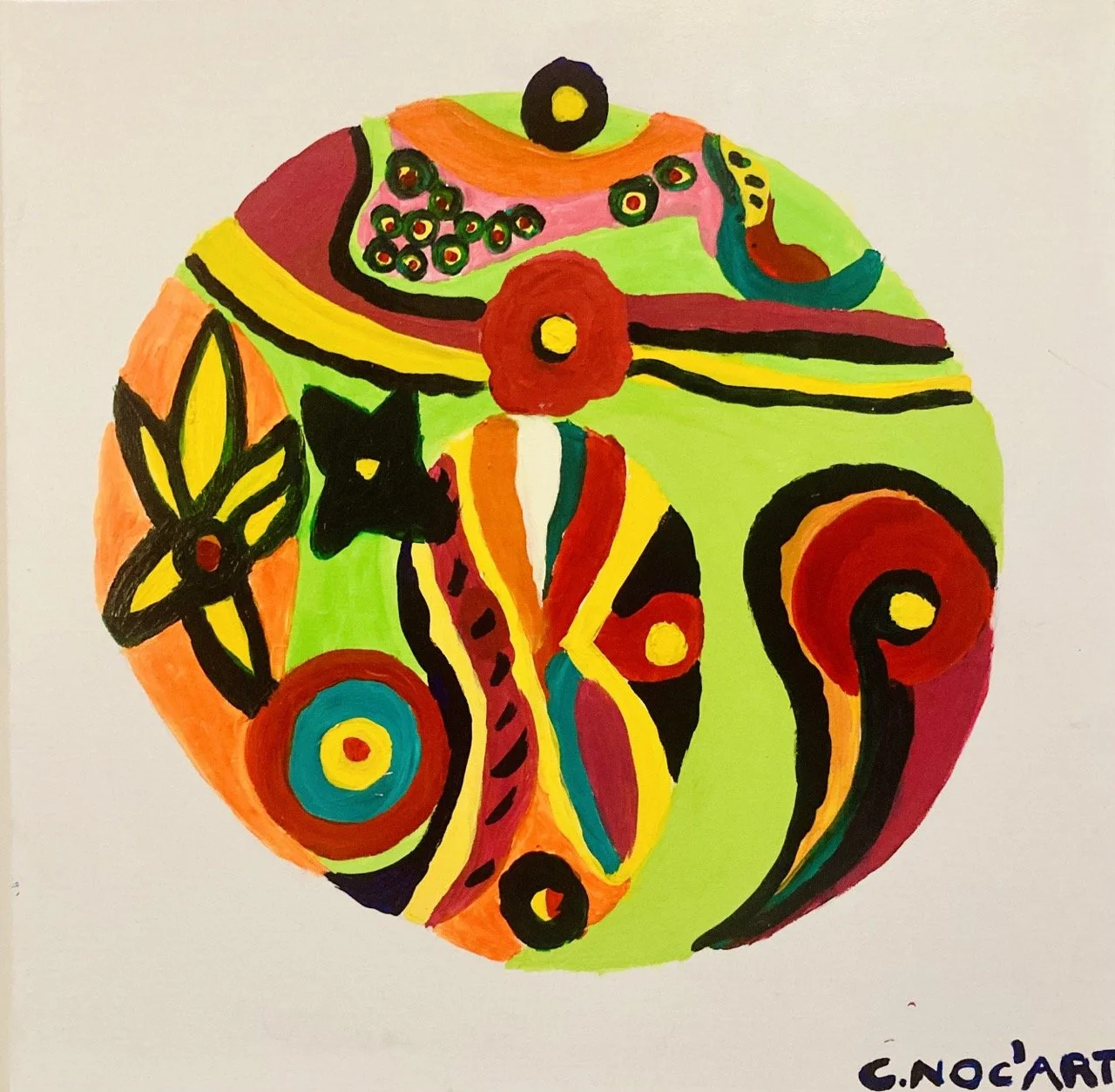 Des toiles éblouissantes accrochées aux murs accueillants de Bulle d’Air, peintes par Caroline, adhérente qui transcende la noirceur par l’éclat des couleurs !